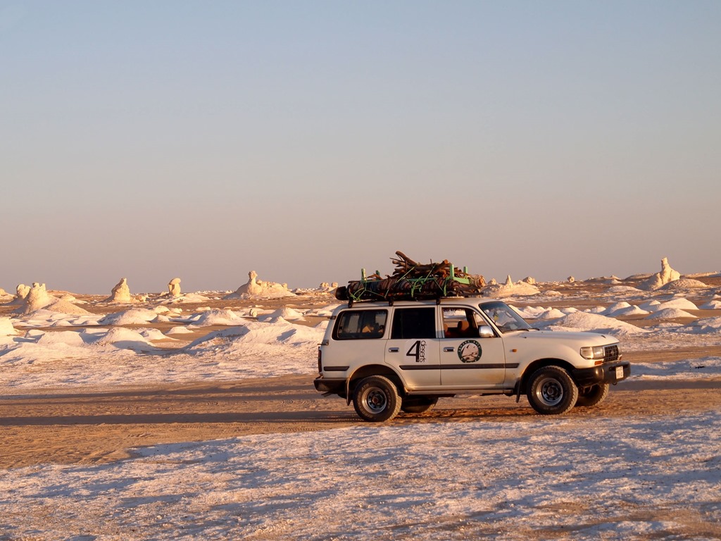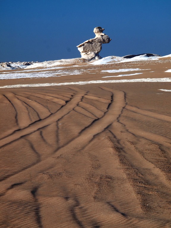 白砂漠とは、この白い岩盤が風で削られ、